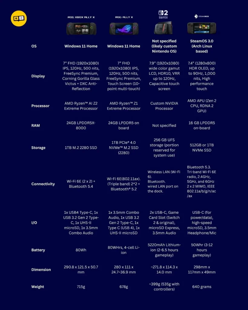 Komparasi ROG Xbox Ally X vs ROG Ally X vs Nintendo Switch 2 vs Steam Deck OLED
